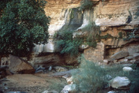 Jordan. Wadi Rum Temple, Looking Southeast - close up view of Sanctuary (note water dripping from spring)