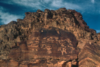 Jordan. Wadi Rum, Rock Drawings - looking west