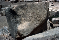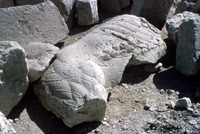 Jordan. Qasr of Iraq al Amir, Late Hellenistic unfinished Lion (upside down) - looking west