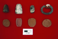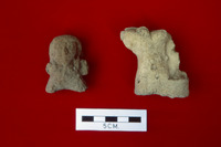 Jordan. Khirbat al-Mudayna (Wadi ath-Thamad), Iron II (Moabite) figurines (human, left; horse head right),