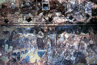 Jordan. Qasr 'Amrah, Umayyad Wall Paintings - looking west, pre-conservation