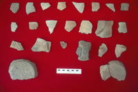 Jordan. Early Chalocolithic painted sherds and flints from Dhra el-Heseini