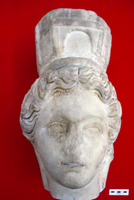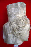 Jordan. Amman Citadel, Marble Head of Tyche - front view, in the collection of Jordan Archaeological Museum at Amman Citadel, museum number: J.6379