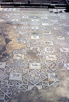 Jordan. Jerash, Late Byzantine Mosaic at Churches of Saints Cosmas and Damian - looking East
