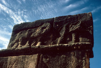 Jordan. Wadi Rum Sancturary, close up of carved Nabataean religious symbols - looking west
