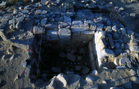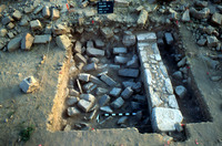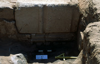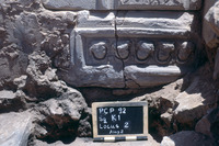 Decorated cornerstone of main entrance. View to east. - Sq. K1. Locus 02.