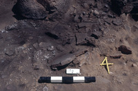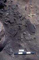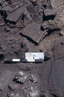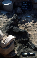 View to east. - Sq. J1. Loci 06, 07 & burnt wood.
