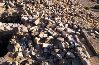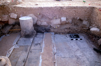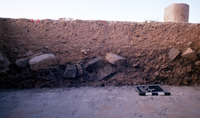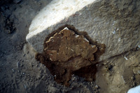Before pre consolidation with Primal AC33 and lifting. View to east. Roll 2 - 11. - Sq. C1. Ashlar with plaster fragment (C1.15.AP1)