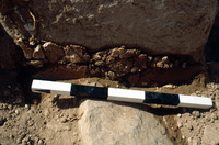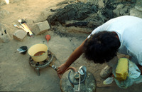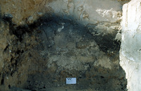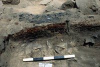 Boiling of bees wax for consolidation of wooden beam(locus 14). View to east. Roll 3 - - Sq. A1.