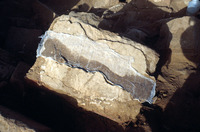View to south. After removal of dirt and before cleaning and consolidation with Primal AC33. Roll 2 - 31. - Sq. B1. Section of north face of Wall A.