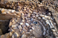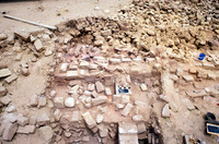 Aerial view to north. - Sq. K3. Loci 02(wall), 03, 06(wall), 07(wall) & 08.
