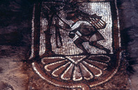 Sq. B1. Close up of mosaic depicting a fowler and his falcon for publication.