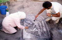 Tom & Fatma cleaning off mosaic in B1 for photograph. - Sq. B1.