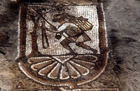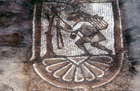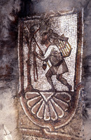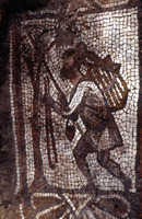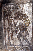 Sq. B1. Close up of mosaic depicting a fowler and his falcon for publication.