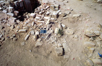 Aerial view to north. - Sq. J3. Loci 02(wall), 04, & 05.