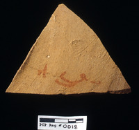 Sherd with painted markings. - Sq. E1. Studio. Locus 11/Pail 17. Reg #PCP.0018.