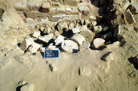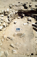 Vessel base. Close-up of "tongue". Refer to CS 25/33-37. - Sq. B2. Studio. Locus 12/Pail 56. Reg #PCP .0053.