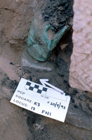 Close-up of Cu/Cu alloy hinge and mount. In-situ. View to east. - Sq. K3. Locus 17/FN1.