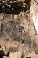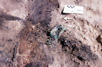 Close-up view to east of Cu/Cu alloy door hinge in-situ - Sq. B2. Locus 12/FN11.