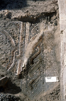 View to west. Mosaic damage - Sq. C1. Mosaic damage