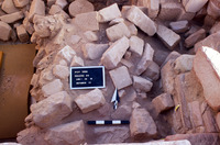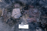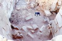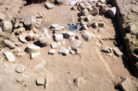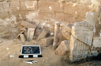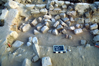 Marble pieces in-situ. View to east. - Sq. F2. Locus 22.