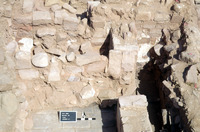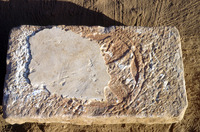 Ashlar(+ plaster) with incised cross. Ex-situ. - Sq. D2. Locus 21/AP8.
