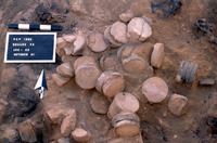 Hypocaust tiles. Aerial view to north. - Sq. F2. Locus 22.