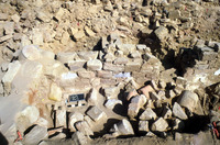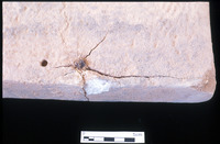 Marble fragment with iron nail embedded. Pre-conservation. - Sq. F2. Studio. Locuse 22/Pail 62/FN2.