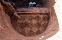 Mosaic damage. Close-up view to north. - Sq. J4. Loci 22, & 25.