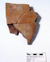 Ceramic "join" feature. Outer view. Sq. B2. Studio. Locus 10/Pail 53. Reg #PCP0053.