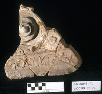 Ceramic "join" feature. Side view. Sq. B2. Studio. Locus 10/Pail 53. Reg #PCP0053.