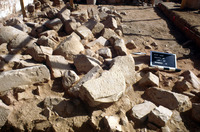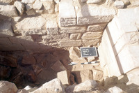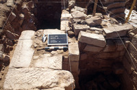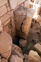 Base of arch showing pre-restoration condition. View to south-west. - Sq. G4.