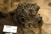 Close-up view (of tree rings) to west. ***36 - 36 W/out board. - Sq. A2. Locus 07.
