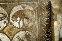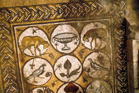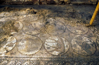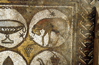 Mosaic depicting a dove - North Aisle. General view from above of Row 1 & Row 2.