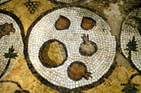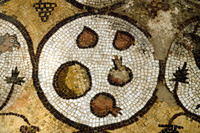 Mosaic depicting pomegranates and other fruit - North Aisle. View from above (to east).