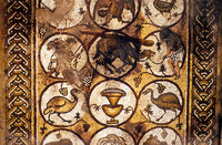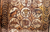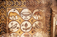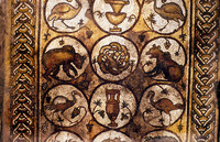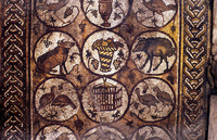 Mosaic depicting a crowned crane or phoenix - North Aisle. View from above (to east)