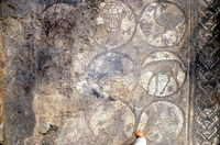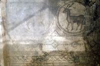 Mosaic depicting a donkey - North Aisle. View from above (to east)