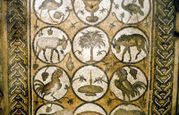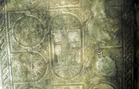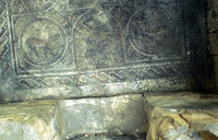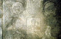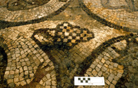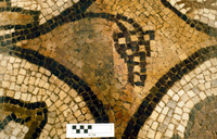 Mosaic - North Aisle. Show fire damage to tesserae.