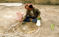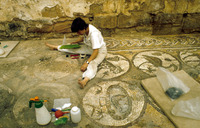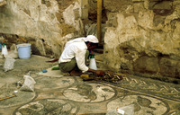 Mosaic - North Aisle. Show pre & post scraping of clcified deposits.