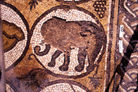 Damaged mosaic depicting elephant - North Aisle