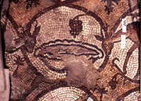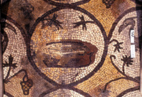 Mosaic depicting a basket with fruit or vegetables - North Aisle