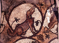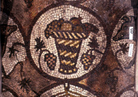 Mosaic depicting gazelles facing a bowl - North Aisle