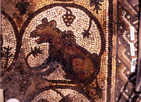 Mosaic depicting a camel carrying a tree-trunk - North Aisle