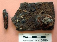 Strap fragments?; iron - Sq. F2. Loc. 03