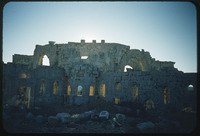 Remains of church in back at modern intersection