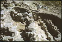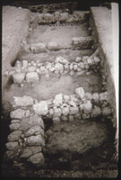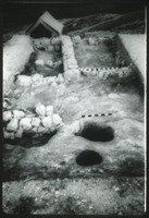 V ext looking S E casemate on right, outer & inner walls, N room in foreground