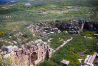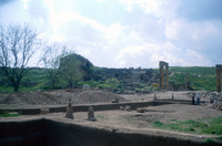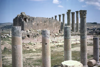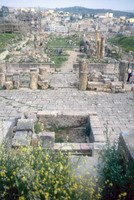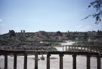 Jordan. Jerash, the Fountain Court with ruins of the Cathedral beyond