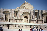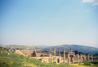 Jordan. Jerash, looking across Forum to South Theater and Temple of Zeus (Jupiter) (معبد زيوس)