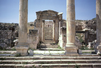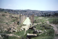 Jordan. Jerash, doorway and stairs from Cardo to Cathedral (Roman temple of Dionysis)