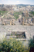 Jordan. Jerash, view east from theater to Colonnaded street (Cardo maximus)